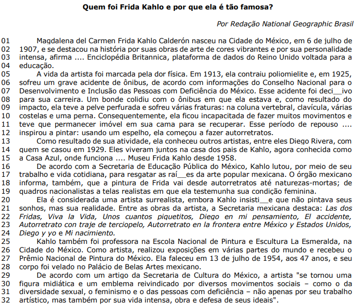 No trecho “Eles viveram juntos na casa dos pais de Kahlo, agora conhecida como a Casa Azul, onde funciona .... Museu Frida Kahlo desde 1958”, identifica-se: