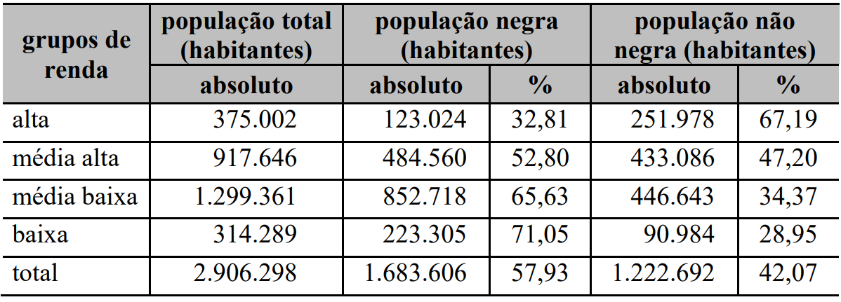 Os dados referidos na tabela indicam que a população negra no DF concentra-se principalmente no estrato de renda média baixa.